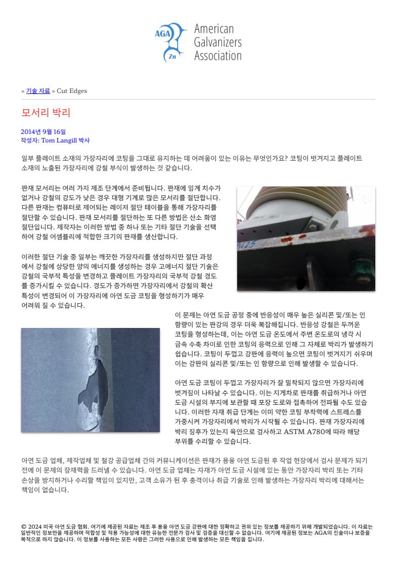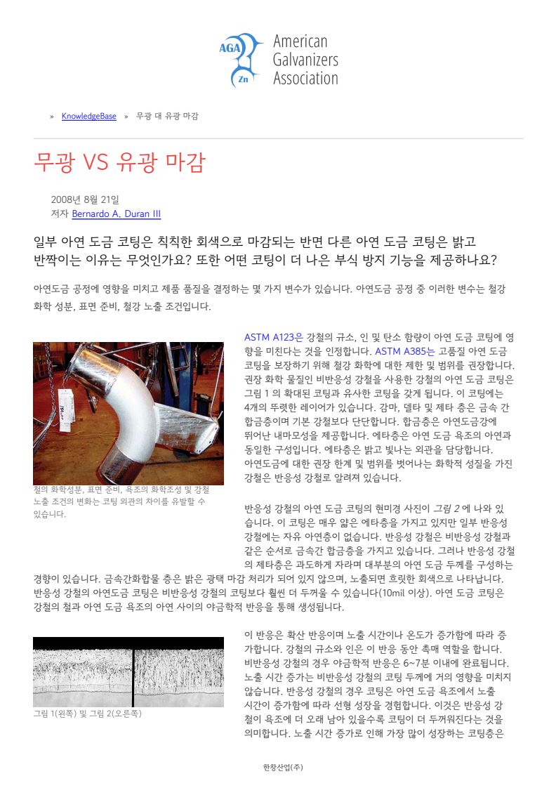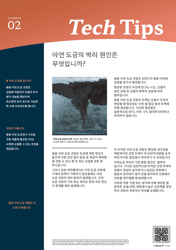 용융아연도금 과정에서 마주치는 다양한 외관 문제와 기술적 궁금증, “사례 연구”에서 명확한 해답을 찾아보십시오. 백화 현상, 버닝 현상부터 올바른 설계 가이드까지, 실제 데이터를 기반으로 한 분석과 국제 표준에 근거한 신뢰할 수 있는 해결책을 제공하여 고객의 성공을 돕는 든든한 기술 파트너가 되겠습니다.